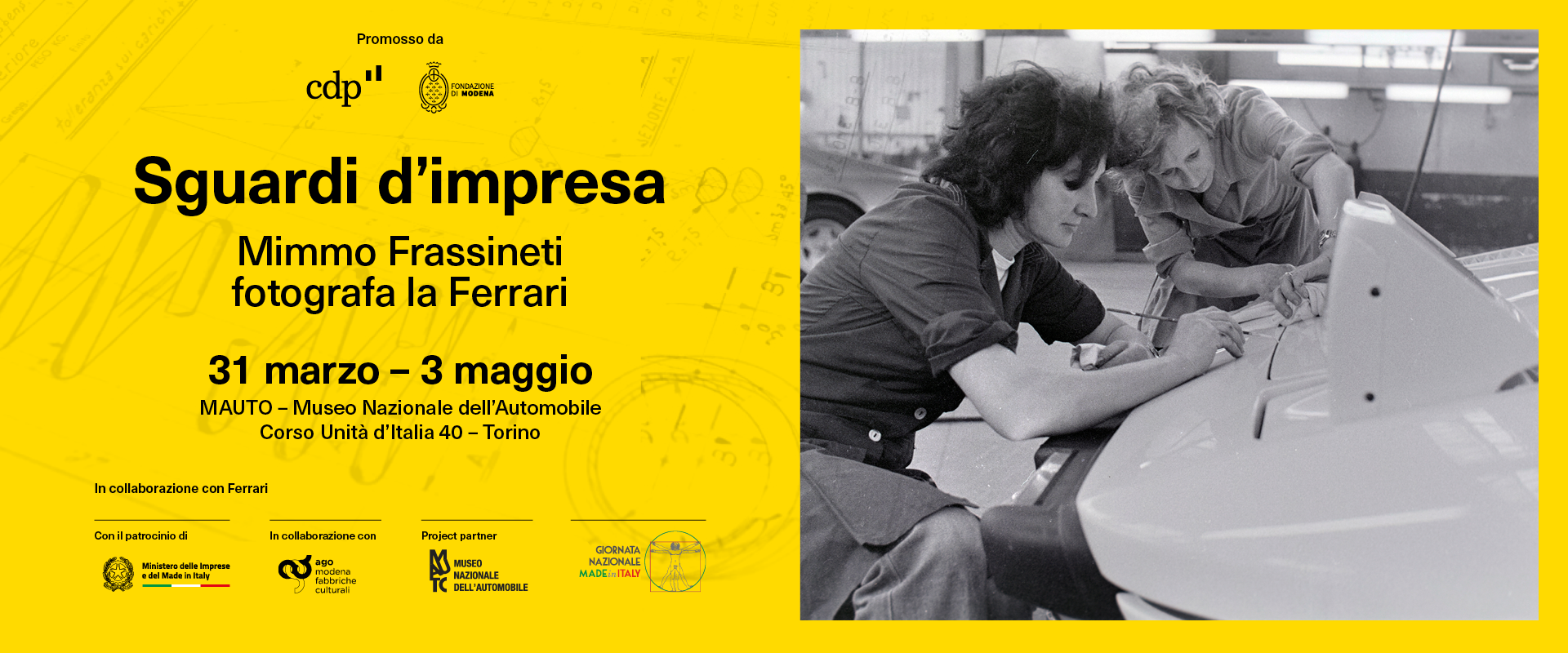 La mostra “Sguardi d’impresa. Mimmo Frassineti fotografa la Ferrari” prosegue il suo percorso espositivo arrivando a Torino, presso il Museo Nazionale dell’Automobile.